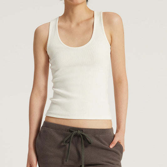Elastic Ribbed U-Neck Tank Top - White