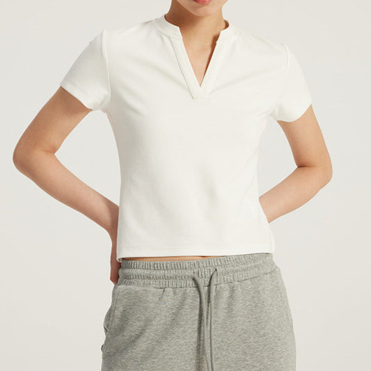 V-Neck Fitted Crop Top - White